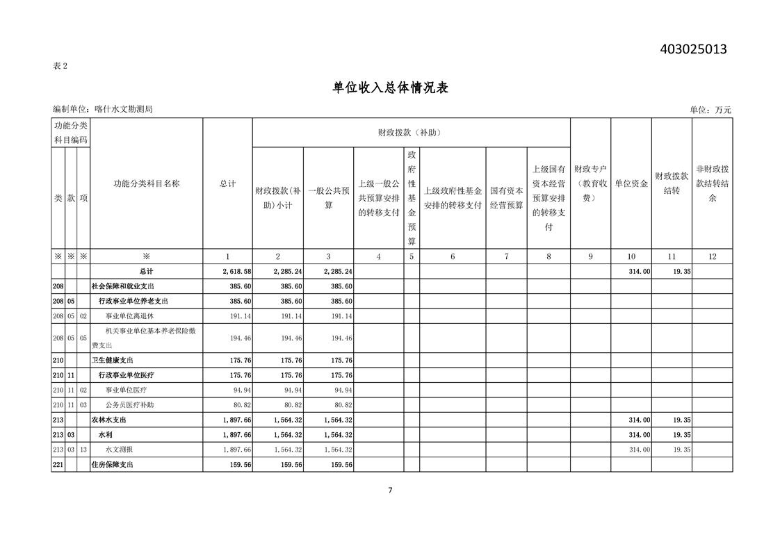 新疆维吾尔自治区喀什水文勘测局2024年单位预算公开